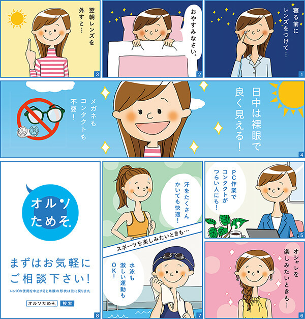東京都葛飾区で受けられるオルソケラトロジー治療のご案内ページ。オルソケラトロジー治療とは、近視・近視性乱視のための、手術をしない視力矯正治療法。夜寝る前に、オルソケラトロジーレンズという特殊なコンタクトレンズをつけることで、就寝中に角膜の形を変化させ、裸眼視力を矯正します。